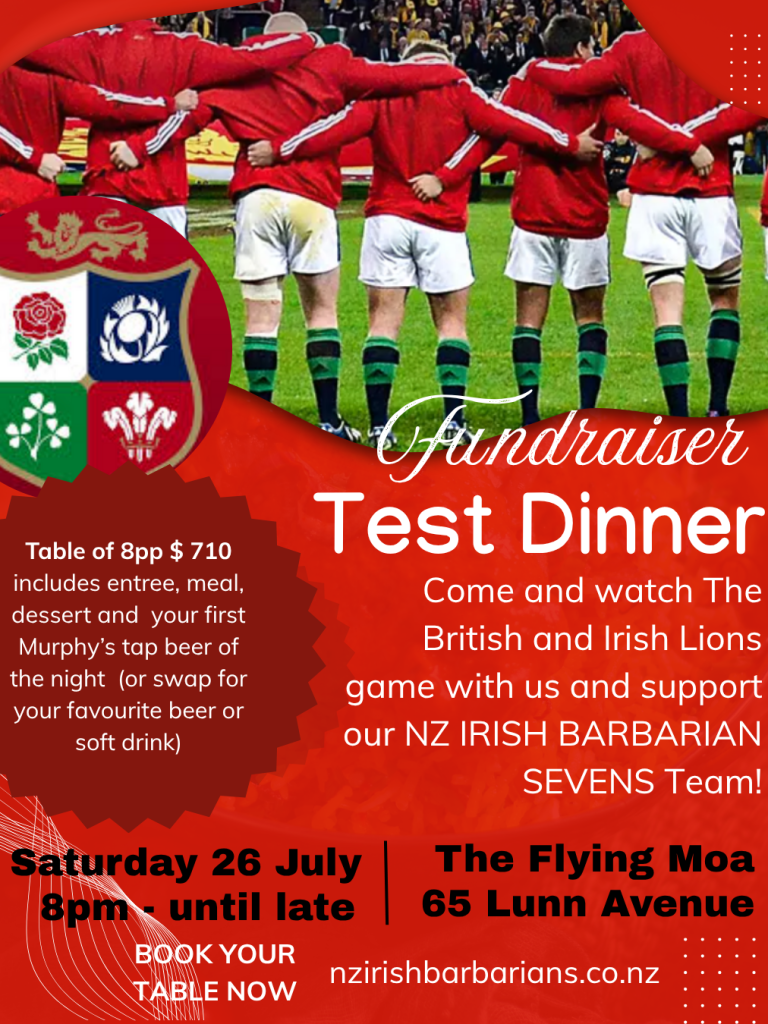 Join us at the Flying Moa on Saturday 26 July for our team launch and a true Irish Pub Night watching the British & Irish Lions vs. the Wallabies!